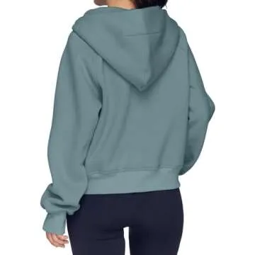 Lapeter Scuba Dupes Sweatshirt Long Sleeve Cropped Sweatshirt Zip Up Hoodies for Women Green L