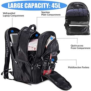 Introducing the ultimate travel companion: the **Laptop Backpack, Extra Large 17 Inch Business Travel Backpack**. Designed with the modern traveler in mind, this backpack boasts a **massive 45-liter capacity** and meticulously organized compartments to keep your belongings neat and easily accessible. Measuring **14.57 x 9.84 x 19.2 inches**, its thoughtful layout features a dedicated **17-inch laptop compartment**, spacious main area, two front pockets, an anti-theft compartment, and over **10 multi-functional...