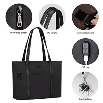 Stylish Waterproof Laptop Tote Bag for Women 15.6 inch Large Capacity