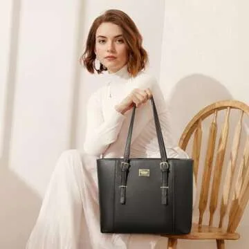 Laptop Bag for Women Large Office Handbags Briefcase Fits Up to 15.6 inch (Updated Version)-Black