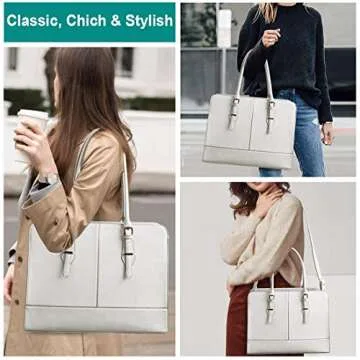 Laptop Bag for Women Leather Work Tote 15.6 Inch Laptop for Computer Bag Waterproof Business Office Professional Large Capacity Handbag Shoulder Bag Beige