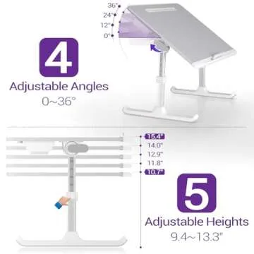 This innovative desk features five adjustable heights from 10.6” to 15.4”, along with four angle settings ranging from 0° to 36°, allowing you to customize your workspace to suit your needs. It’s designed with stability in mind, boasting super strong legs that ensure it can withstand daily use without wobbling or breaking. Ideal for both left-handed and right-handed users, the adjustable stopper makes positioning just a breeze.