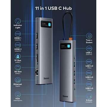 Laptop Docking Station, Baseus Triple-Display USB C Docking Station Dual Monitor, USB C Hub Multiport Adapter for MacBook/iPad/Dell/HP/Lenovo/USB-C Devices(2 HDMI+VGA+3 USB 3.0+PD+LAN+SD/TF+Audio)