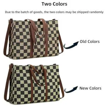 Laptop Tote Bag for Women Work Shoulder Bags 15.6 inch Canvas Lattice Laptop Computer Purse Messenger Teacher Handbag Business Office Briefcase(Khaki-Black)