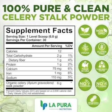 LaPura Organic Celery Powder Detox Cleanse - Fresh Celery Juice Powder to Support Gut Health & Naturally Detox - Cleanse & Detoxify, Antioxidant Just Celery Organic 30 Servings, 6.35 Ounce