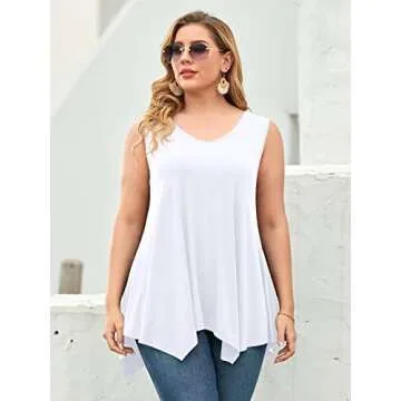 LARACE Plus Size Tank Tops for Women V Neck T Shirts Summer Sleeveless Tunic Tops Loose Fit Flowy Blouse(3X,White)
