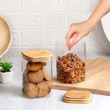 Laramaid 40oz 4Packs Glass Jars Set, Square Pantry Jars with Bamboo Lids, Black Labels and White Pen, Food Storage Containers for Home, Kitchen and Pantry