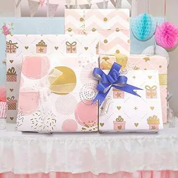Larcenciel Wrapping Paper for Girl, Metallic Gold Foil Wrapping Paper, Pink Gift Wrap for Birthday, Valentines Day, Christmas, Wedding, Baby Shower,4 Sheets 27.5x19.6inch