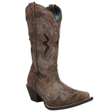 Laredo Womens Lucretia Tooled-Inlay Embroidery Studded Snip Toe Dress Boots Mid Calf Mid Heel 2-3" - Brown - Size 7.5 B_W