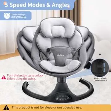 LAREX Baby Swing Infant Swing Electric Toddler Baby Rocker Portable for Newborn Boy Girl, 5 Sway Speeds with Remote Control, 10 Preset Melodies and Bluetooth, 0-6 Months Max 20 Lbs (Black)