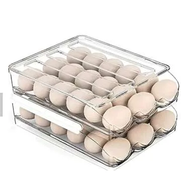 Large Capacity Egg Holder for Refrigerator - Clear Plastic Organizer Bin (2 Layers)