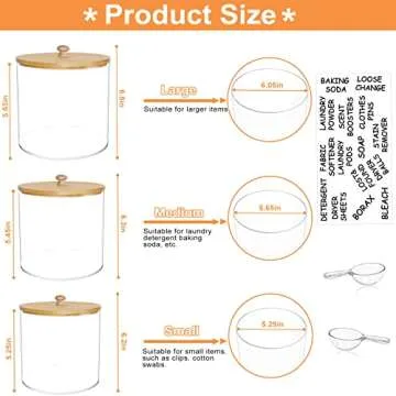 Large Capacity Laundry Room Organization Jars, 3 Pcs Acrylic Containers with Scoops & Labels for Laundry Supplies