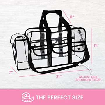 Large Clear Makeup Organizer Bag 17 inch x 9 inch x 10 inch, Cosmetic Bag with Sturdy Zipper and 4 External Pockets for Toiletries Adjustable Strap