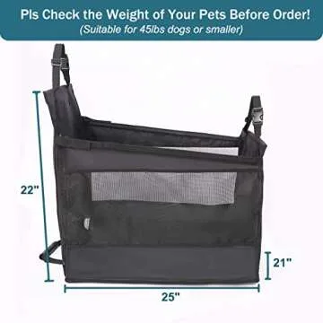 Large Dog Car Seat - Dog Car Seat for Large Dogs, Half Hammock Dog Seat Cover Water-Resistant for Cars, Trucks, SUVs, Full Seat, Half Seat and Floor Coverage