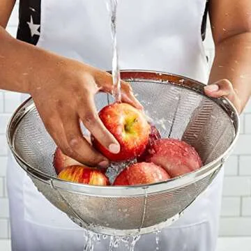 Large Fine Mesh Strainer for Kitchen - Metal Stainless Steel Colander for Rice, Pasta, Quinoa, Yogurt (11x4 In)