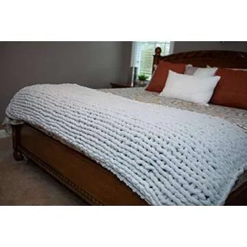 Large Grey Chunky Knit Blanket - (50 x 70) Machine Washable XL Chenille Blanket Super Soft Hand Knit Throw Blanket, Beautiful Home Decor Throw, Couch, Bed, Chair, Sofa, Gift - Light Gray
