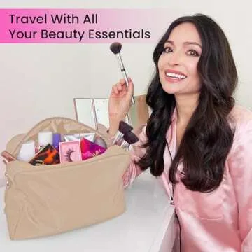 Large Makeup Bag, Nylon Makeup Pouch, Make Up Bag, Cosmetic Bag, Makeup Case, Travel Makeup Bag, Cosmetic Travel Bag, Makeup Bag Travel Cosmetic Bag, Makeup Organizer Bag, Beige Makeup Bag Large Pouch