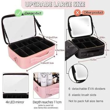 Large Makeup Bag With Light Up Mirror, [Extra Large Size] Yofuly Lighted Makeup Case, Travel Makeup Train Case with Adjustable Dividers and 10x Magnifying Mirror | 3 Adjustable Brightness