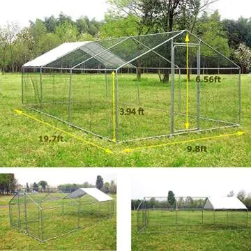 Large Metal Chicken Coop Walk-in Poultry Cage with Waterproof&Anti-UV Cover, Galvanized Steel Spire Top Coops with Door for Outdoor Backyard Farm Use 40 Chickens 19.7×9.8×6.6ft