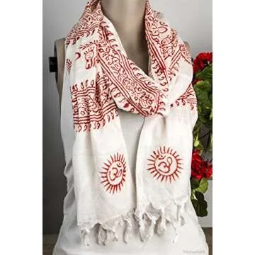 Large Om Scarf Wrap Yoga Soft Cotton Mix Hand Printed Mantra Prayer Boho Bohemian Yoga Yellow White Black & Blue (White)
