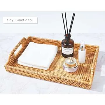 While many serving trays exist, this LYSCO tray stands out thanks to its distinctive hand-woven design and eco-friendly materials, making it not only a visually pleasing choice but also an environmentally responsible one. Competing trays often feature synthetic materials that lack the charm and warmth this rattan option provides. Additionally, many competitors don't offer coasters or the same return commitments, ensuring this tray's value proposition is top-notch.Why You will Love This Product: Imagine entertaining friends with a beautifully organized coffee table or having a stylish centerpiece for your gatherings. This tray elevates your experience of hosting and brings cohesion to your decor. It’s not merely a tray; it’s a statement piece that garners compliments while providing functionality. Whether you're enjoying a morning coffee or hosting evening gatherings, it adds a layer of charm and sophistication to every moment. You’ll find yourself reaching for it time and again, enhancing both your home and your lifestyle!