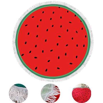 Show more Introducing the ultimate companion for your sun-soaked adventures: our luxurious oversized round beach towel. Crafted with a commitment to quality, this towel boasts a remarkable weight of 1.4lbs (600g), making it significantly thicker and more durable than typical options found on Amazon. Measuring a generous 150CM x 150CM, it's designed to comfortably accommodate up to two beachgoers, allowing you to snuggle up and create memories with your favorite companion!