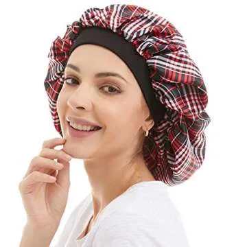 Large Satin Sleep Cap Silk Elastic Night Sleeping Hat Bonnet Nightcap Head Cover with Comfortable Wide Band for Women (TW-3)