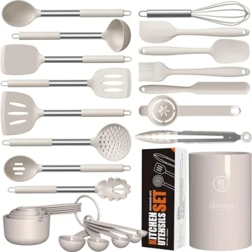 Elevate your cooking experience with this premium 18-piece kitchen utensil set, designed to meet the demands of both amateur cooks and culinary professionals alike. Crafted from food-grade silicone combined with durable 304 stainless steel handles, this set is a perfect blend of functionality and aesthetics. Each utensil not only adds a splash of modern elegance to your kitchen but also ensures heat-resistance, enduring temperatures up to 446°F....