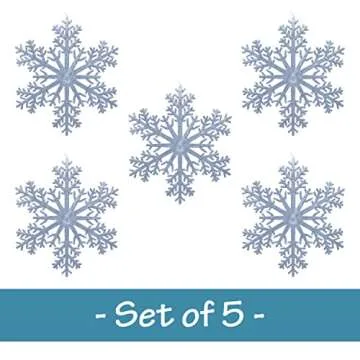 Large Silver Glittered Snowflake Ornaments - Set of 5 - Each Measures 12" D - Snowflake Decorations - Window Décor - Winter Wonderland Decoration