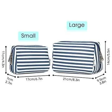 Show more Introducing the Large Vegan Leather Makeup Bag Zipper Pouch Travel Cosmetic Organizer in a beautiful Blue Stripe design! This chic and functional makeup bag perfectly blends style and practicality, making it every beauty enthusiast's must-have accessory. Measuring an ample 8.3" x 5.5" x 3.8" (21x14x9.5 cm) and weighing a lightweight 4.3 ounces, it effortlessly provides a spacious yet compact solution for storing your cosmetics and travel essentials, allowing you to stay organized without the bulkiness. Crafted from high-quality soft PU leather, this makeup organizer not only exudes elegance but also stands up against spills and stains, keeping your products safe and clean.