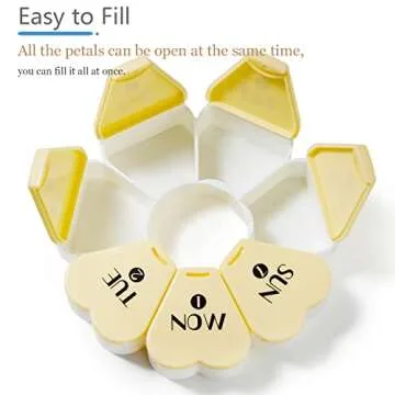 Show moreMOLN HYMY's Large Weekly Pill Box is the perfect companion for anyone looking to streamline their daily supplement routine while adding a touch of charm to their day. This adorable floral pill case is not only practical but also visually appealing, making it a delightful addition to your home or travel essentials. With a careful design that prioritizes both capacity and aesthetics, each compartment accommodates up to 8 large pills or 6 substantial fish oil capsules, ensuring that you can store all your necessary medications in one organized place.