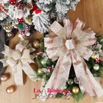 LaRibbons Christmas Ribbon Wired 2.5 Inches Wide 6 Rolls 36 Yards Pink and Gold Glitter Snowflake Jewel Omaments Ribbon Set for Christmas Tree, Gift Wrapping, Wreath Bow, Home Decor