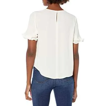 Lark & Ro Women's Georgette Half Sleeve Crew Neck Blouse with Ruffle Details