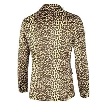 Lars Amadeus Men's Party Animal Leopard Print Blazer Notched Lapel Lightweight Sport Coat Suit Jacket Large Brown