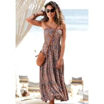 Show moreEmbrace effortless style and versatility with the LASCANA Women's Smocked Convertible Maxi Dress in Brown Multi. This stunning dress is designed for the fashion-forward woman on the go. With its remarkable convertible design, you have the freedom to wear it as a flowing maxi dress or a chic skirt, making it a perfect addition to your weekend wardrobe. The eye-catching print captures attention while the soft, breathable fabric ensures you remain comfortable from day to night. Whether you're attending a beach party or a brunch with friends, this dress adapts to your every need, showcasing elegance and sophistication at every turn.