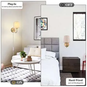 LASENCHOO Plug in Wall Sconces Set of Two, Modern Wall Lamp with Plug in Cord 6.56ft & On/Off Switch with Fabric Lampshade, Gold Sconces Wall Lighting Fixture for Bedroom Bedside Living Room Porch