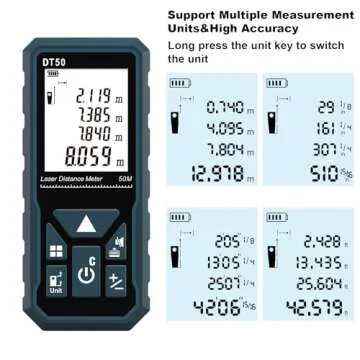 Laser Measure 165ft DT50 Laser Distance Meter 50M, Portable Handle Digital Measure Tool Range Finder, Larger Backlit LCD 4 Line Display IP54 Shockproof