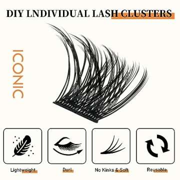 Lash Clusters DIY Eyelash Extensions 144 PCS Crislashes Eyelash Clusters Mixed 8-10-12-14-16-18mm Cluster Lashes D Curl Volume Lash Clusters Eyelash Extensions for Home Use - Style 'Iconic'
