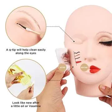 Show more Introducing the ultimate practice tool for beauty enthusiasts and professionals alike: the silicone mannequin head. This product, made from imported soft silicone, mimics the smooth and soft texture of real human skin, making it ideal for various beauty applications. Whether you're perfecting your eyelash extension techniques, mastering makeup, or engaging in facial massage practices, this mannequin head is your go-to companion. Its reusable design ensures that it remains clean and ready for your next session. With this head, you won't face the hassle of frequent clean-ups; a quick wipe with professional cleansing oil, isopropyl alcohol, or skincare essential oil will keep it fresh and ready for action.