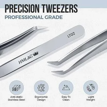 LASHVIEW Lash Tweezer, High Precision Stainless Steel Volume Eyelash Tweezers, Eyelash Extension Tweezers for Profissional Grafting lash Extension, LT02