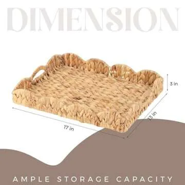 LASIDO Water Hyacinth Handwoven Seagrass Tray with Scalloped Edge and Handles (17x13x3in) Rectangular Handwoven Trays, Water Hyacinth Basket for with Built-in Handles (Rectangular - 1 PCS)