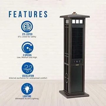 Lasko 4890 Elegant Living Fan with Remote Control-Features Accent Lighting and Widespread Oscillation-Perfect for Outdoor Patios, Decks, or Balconies, Brown