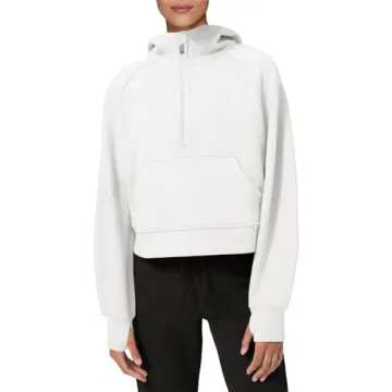 The hoodie features a trendy cropped cut that flatters all body types, with a stylish 1/2 zip-up collar that adds a chic touch while providing ease of wear. Its long sleeves are equipped with convenient thumbholes, making it ideal for layering as they keep the sleeves in place and offer extra warmth for your hands. Adding a stand collar and spacious kangaroo pockets, this hoodie seamlessly merges practicality with modern style.
