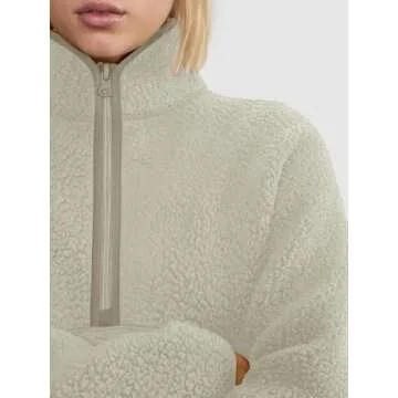 LASLULU Womens Half Zip Sherpa Pullover White Cropped Sweatshirts Faux Fur Fleece Jacket Cute Teen Girls Sweatshirt Fuzzy Sweaters Fall Winter Outfits 2024 (Ivory, XX-Large)