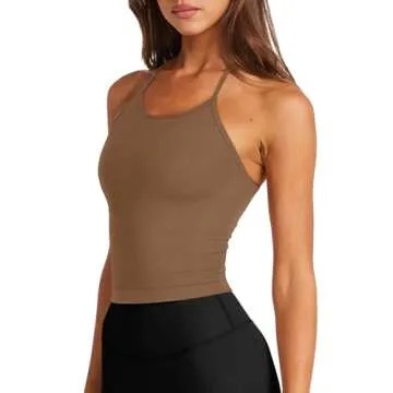 LASLULU Womens Sports Bra Workout Tank Tops Longline Padded Medium Support Fitness Workout Bra Camis Crop Tank Cute Tops(Brown Large)