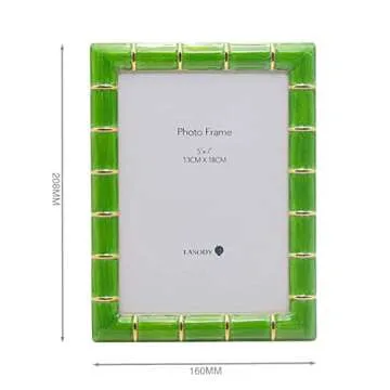 LASODY 5x7 Gold Metal Bamboo Design Picture Frame Green Photo Frame Tabletop Picture Frame