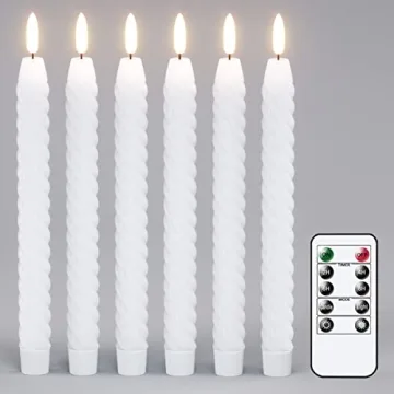 Show more Experience the holiday magic without any safety concerns with the exquisite Lasumora Flameless Taper Candles. These remarkable candles offer the perfect solution for creating a beautifully illuminated atmosphere in your home, blending elegance with functionality. Designed meticulously from real wax, these candles not only mimic the appearance of traditional taper candles, but they also boast an innovative 3D wick that flickers just like real flames, casting a warm and inviting glow that instantly transforms your space. Whether you're decking your halls for Christmas or hosting a chic dinner party, you can bask in the cozy ambiance without the risk of fire hazards—ideal for homes with children and pets.