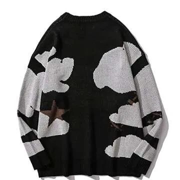 LATAHUO Long Sleeve Crewneck Anime Rapper Knit Sweater Harajuku Hip Hop Rap Vintage Knitted Sweater Streetwear(Black, Small)