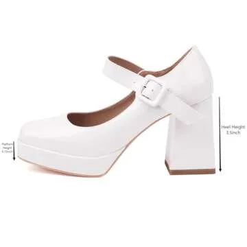 Latasa Women's White Platform Chunky High Heels Closed Toe Block Mary Jane Heels Pumps Dress Shoes (8,White)