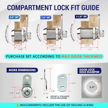 Show moreIntroducing the LATCH.IT 1-1/8” RV Storage Locks – the ultimate solution for securing your valuables on the go! Crafted from 100% premium metal, these RV compartment locks offer unparalleled durability and security compared to traditional counterparts, which often use soft metals that rust easily. Say goodbye to flimsy locks and embrace a robust, weather-resistant design perfect for adventurous travelers. This two-pack features easy installation that can be completed in under five minutes, allowing you to hit the road with confidence. Plus, with four tubular cam lock keys included, you’ll always have a spare on hand. Whether you’re replacing old locks or enhancing your RV’s security, LATCH.IT locks are specifically designed with your needs in mind for multi-purpose use in any environment.